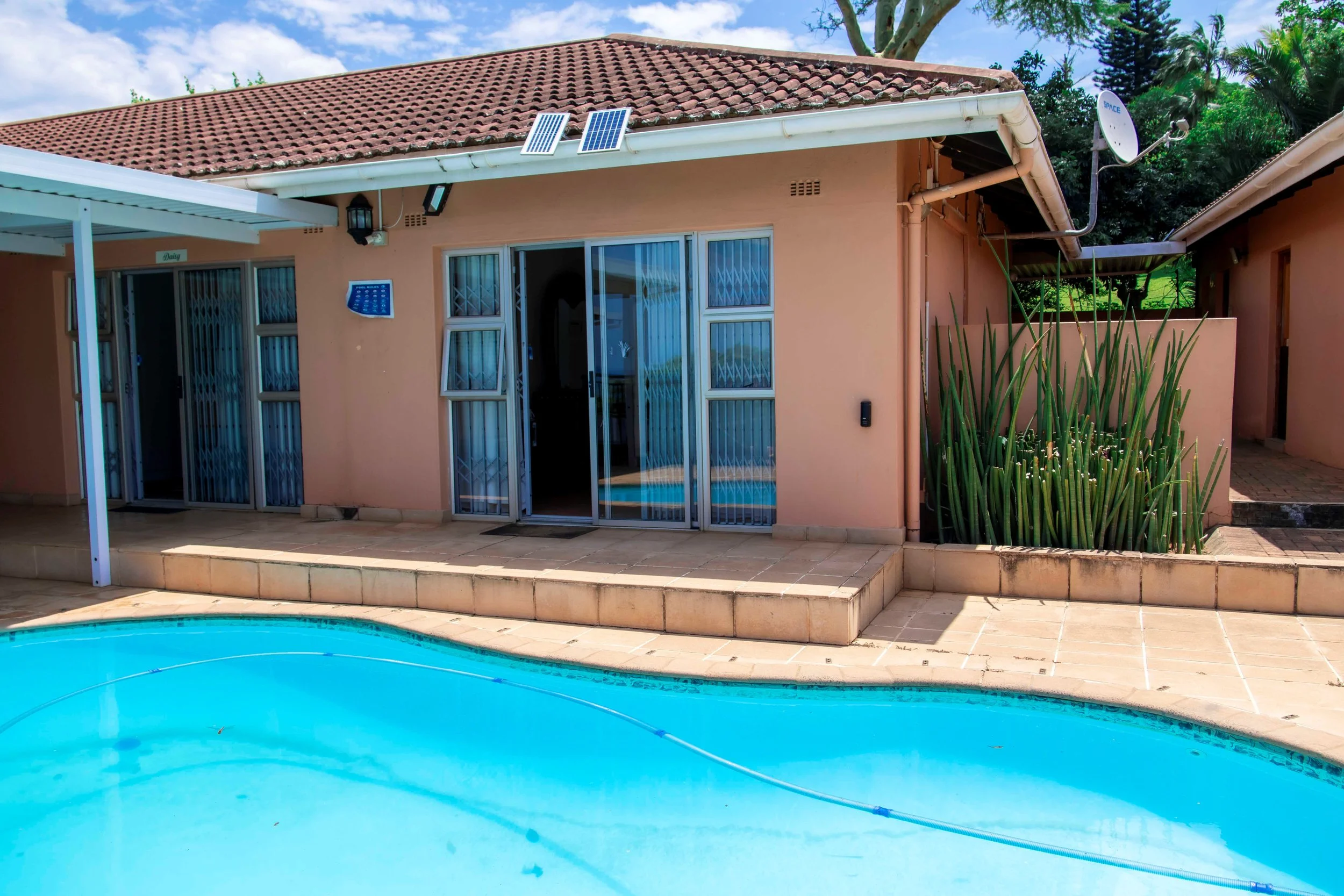 Lodge surroundings ZAR 0.00 Main House ZAR 0.00 Room 1: Tulip (Sea and Swimming Pool View) ZAR 1,350.00 Room 2: Jasmine (Garden View) ZAR 1,350.00 Room 3: Trio (Sea and Swimming Pool View) ZAR 1,350.00 Room 4: Daisy (Sea and Swimming Pool View) ZAR 1,350.00 Room 5: Gazania (Garden View) ZAR 1,200.00 Room 6: Plumbago (Garden View) ZAR 1,350.00 Room 7: Orchid (Garden View) ZAR 1,200.00 Room 8: Nigella (Garden View) ZAR 1,200.00